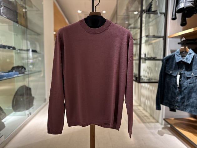 3PLYのしっかりしたメリノウールを使用し、且つ滑らかな肌触りです。ハイゲージの中では少し肉厚な感じです。シワになりずらくホームクリーニングも可能です。
