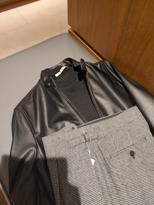 ブラックニットにブラックのライダースと合わせてモノトーン主体で都会的に見せたり