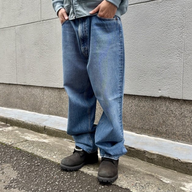 今回はあえて3(L)サイズを着用。ウエストはベルトで絞って着用していますが、ワタリから裾にかけてしっかりと余裕があり、ルーズなストレートシルエットを楽しめます。