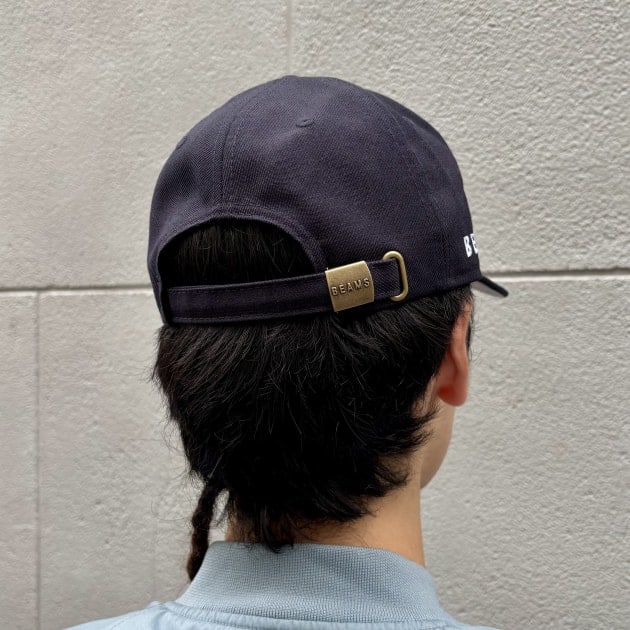 右サイドにさりげなく施されたBEAMSロゴの刺繍や、共生地で仕上げたバックストラップなど、細部にまでこだわりを感じられるのもポイント。
