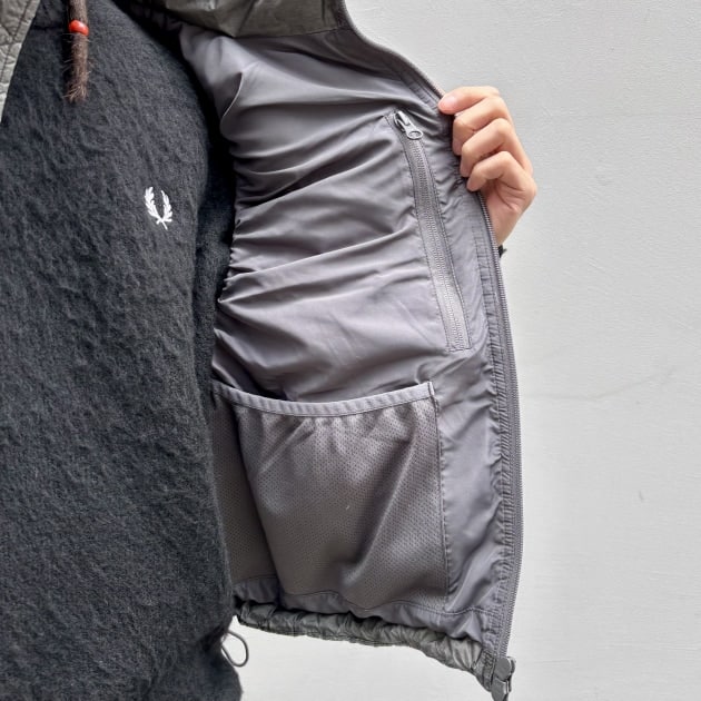裾のドローコードでシルエットを調整できるため、レイヤードスタイルでもバランスを取りやすい設計。