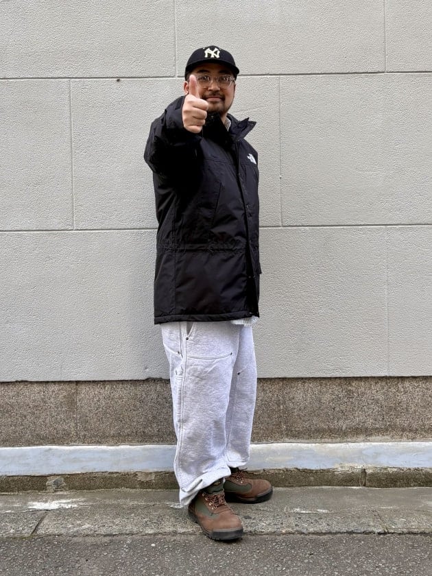 またデザインとしては袖のテープ、大きめのフード、フロントのダブルフラップなど、寒い北海道の冬でも安心して着用できる仕様がポイントですね。