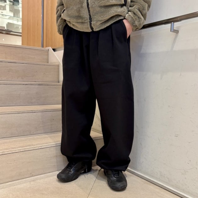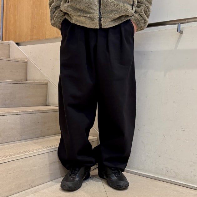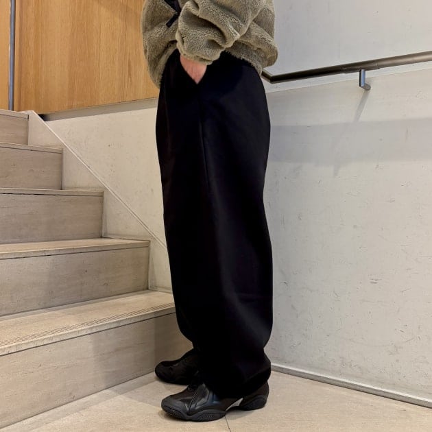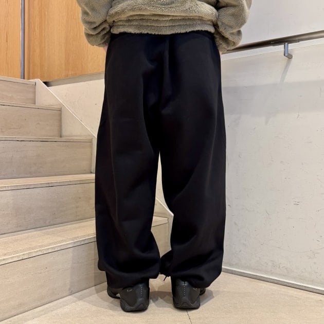 トレンドのワイドシルエットながら、素材には防風機能付きのヘビーウェイトスウェットを採用しており、見た目以上に暖かい一本です!