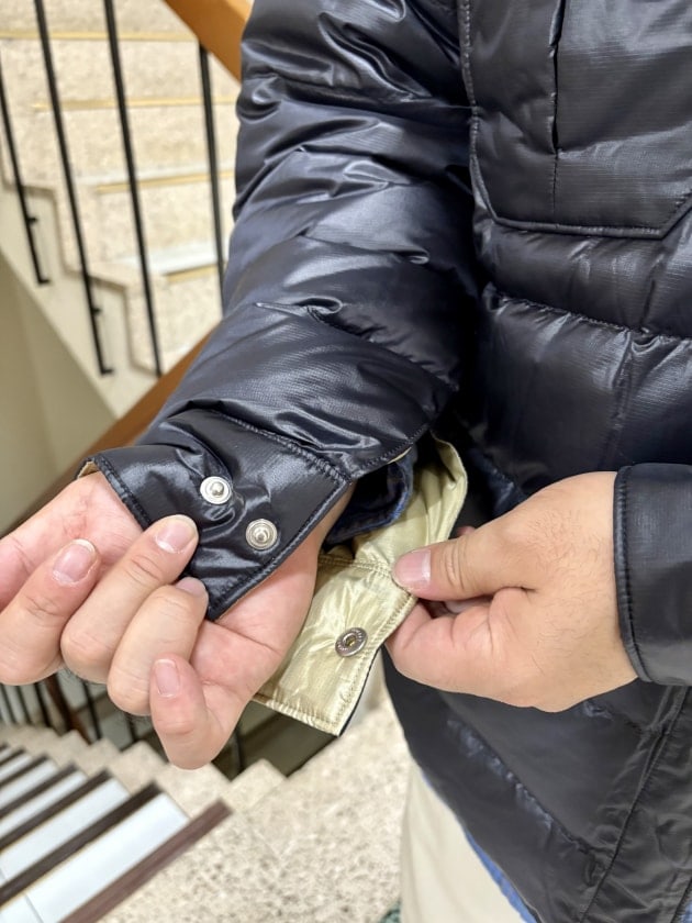 またよーく見てみると、ブランドの刻印がデザインされたスナップボタンとなっており、細部までこだわりのあるデザインです。