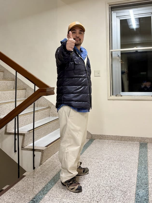 シルエットは程よくゆとりをもたせたサイズ感となっており、今回はLサイズ着用でシャツの上から余裕をもってレイヤードする事ができました。