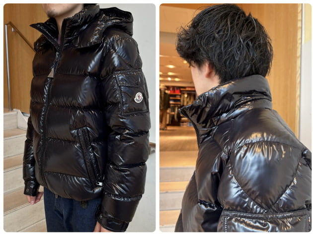 表の生地感は光沢のあるナイロンラケを使っていて、MONCLER特有のツヤ感が特徴です!