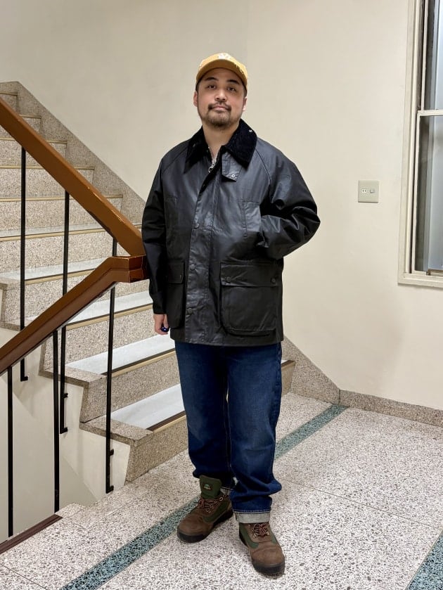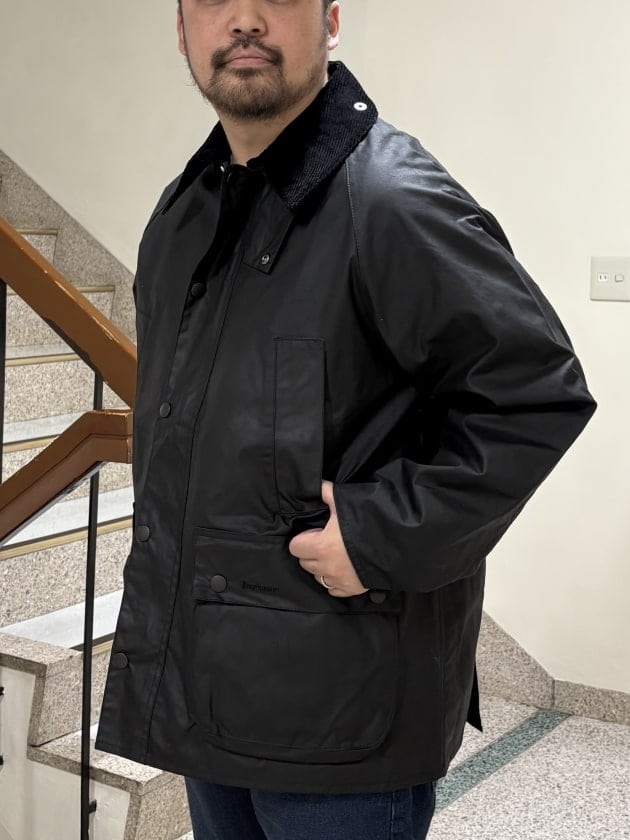 トップスに使用したのがBarbourのBEDALE オーバーサイズ フィット ワックス ジャケットです。