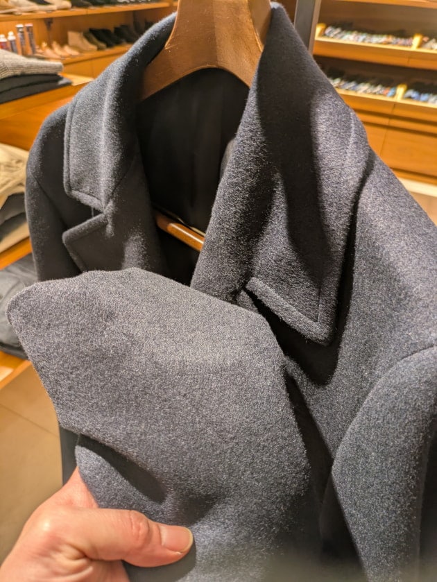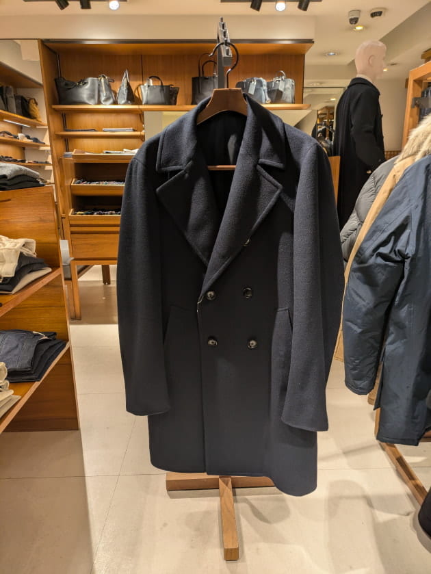 何年か前にはショート丈のピーコートが人気でしたがこちらはトレンドに左右されない普遍的な形です