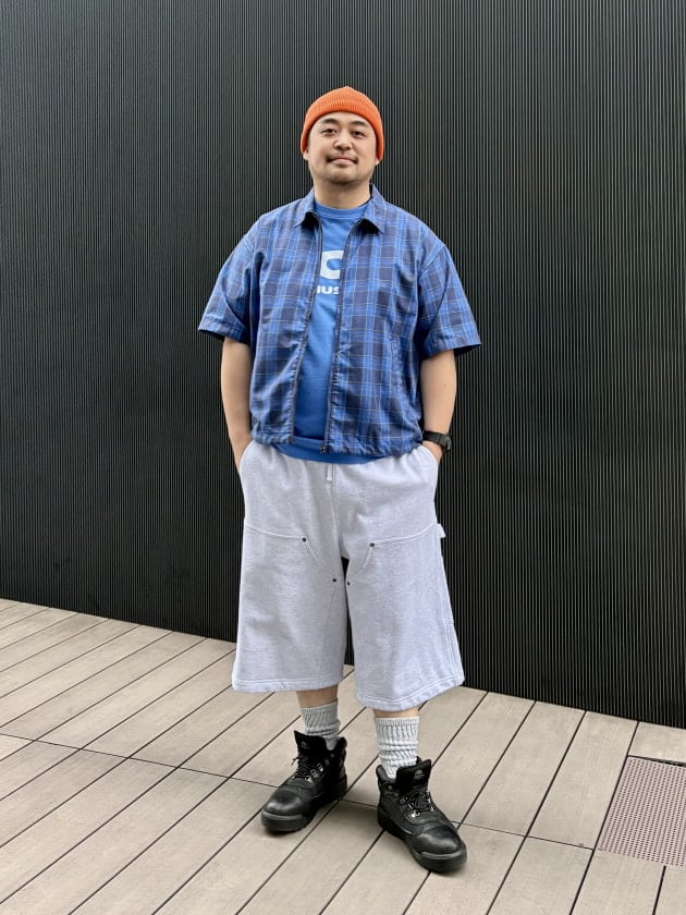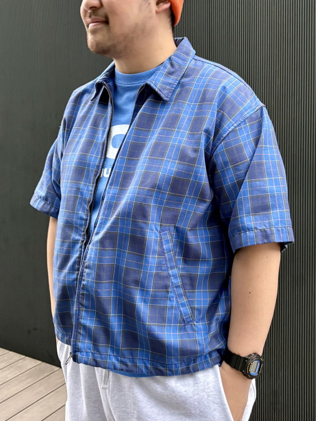 ワイドショートのシルエットと、フロントジップのシャツという事で、半袖だけだと少し肌寒い時や、コーディネートに物足りなさを感じるときにオススメです。