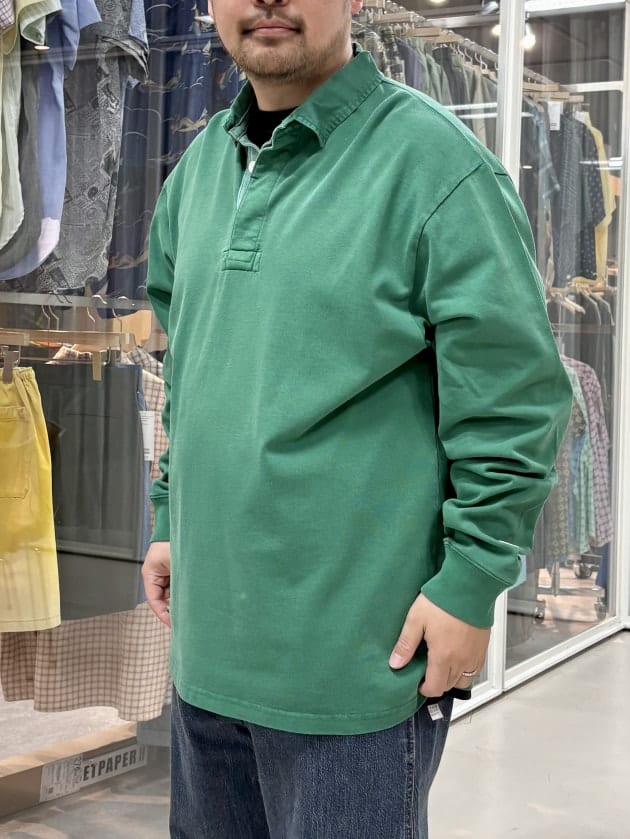懐かしさ溢れるラガーシャツを使用したスタイリングです。
