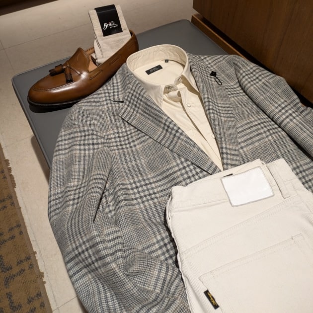 グレンチェックだとコントラストがはっきりしすぎますが これは雰囲気のいいパターンですね