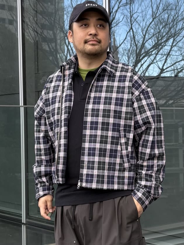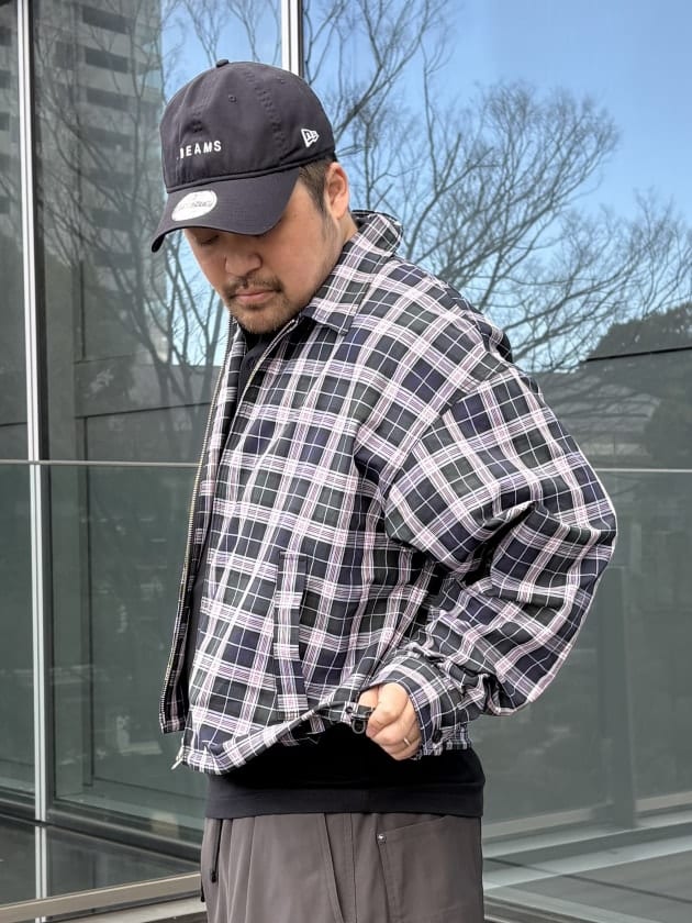 BEAMS / チェック ジップアップ ブルゾン 【ワイドショートフィット】