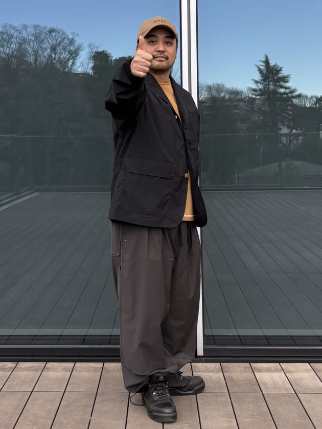前回も好評だったテックブレザーを使用したスタイリングです。
