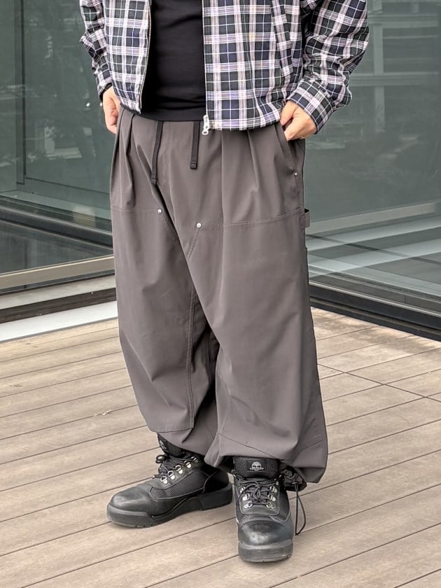 ワイドストレートのゆったりシルエットと、裾に配置されたドローコードなど、履き心地も実用性もバッチリなアイテムです。