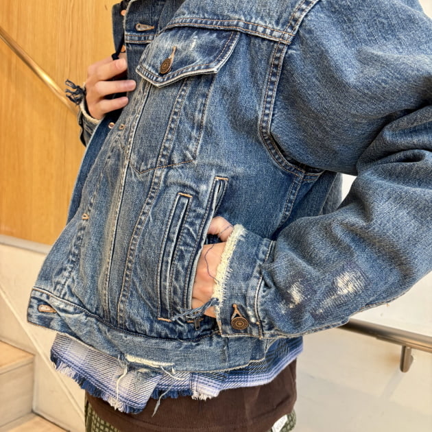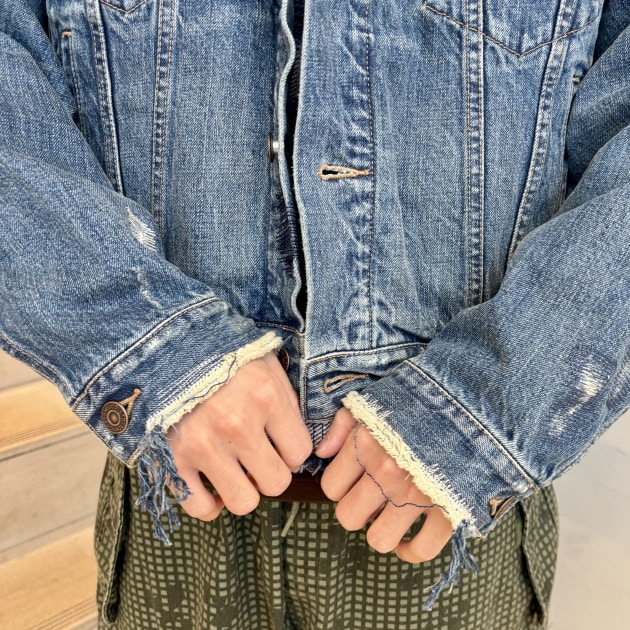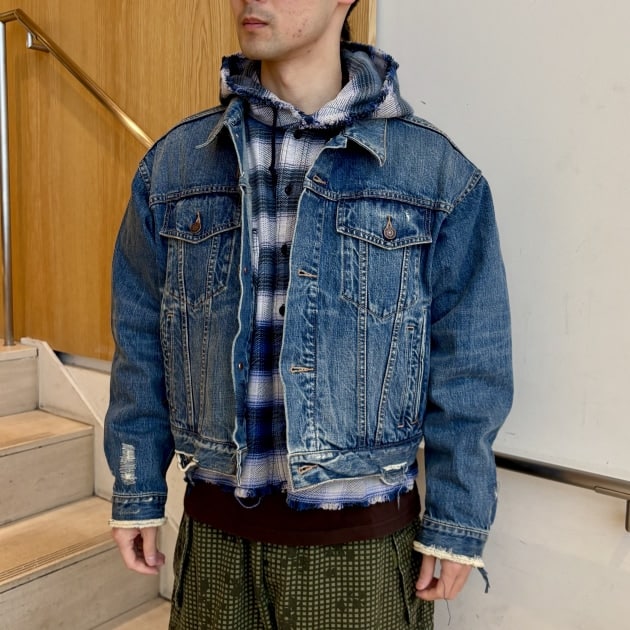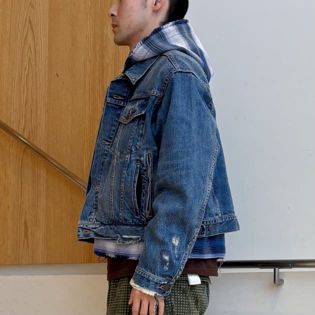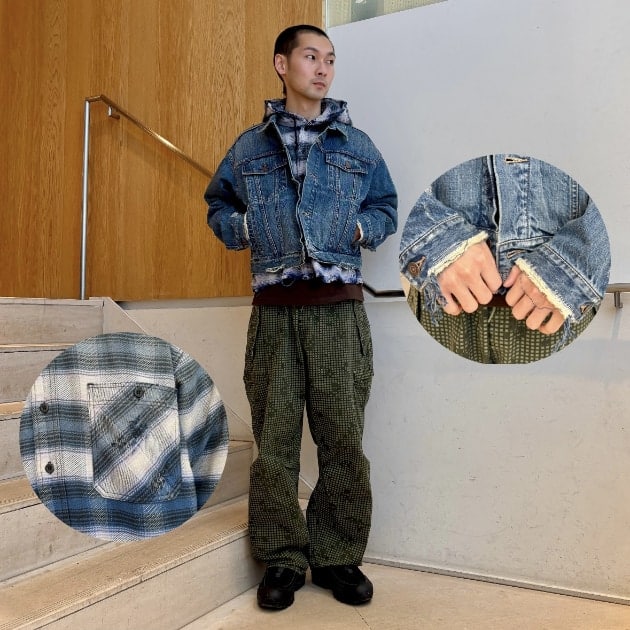 加工感のあるアイテム同士を重ねつつ、シルエットで今のバランスに整えました。