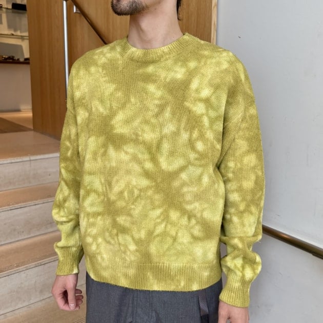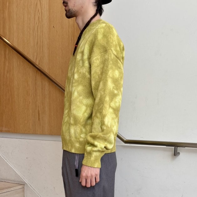 インナーにはムラ染めクルーネックニット。