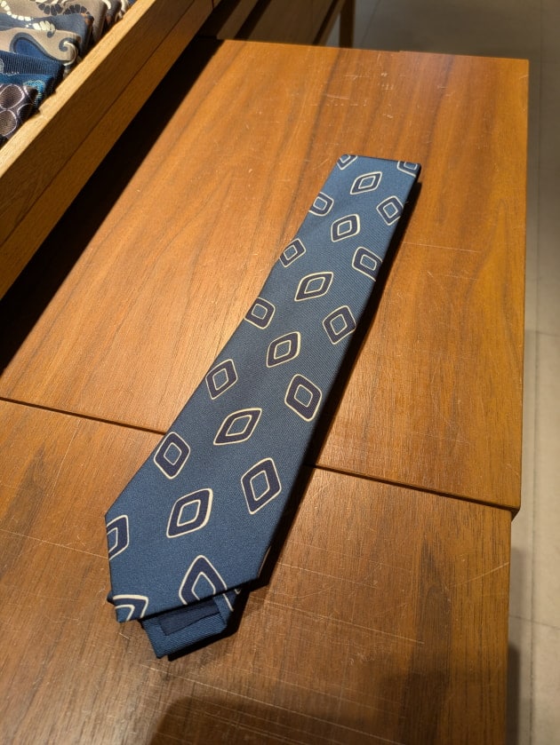 シーズンルックでもあったホリデーアンドブラウンのブルーのタイ