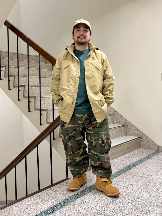 トップスに使用しているのがTimberlandの別注Nylon Jacketです。
