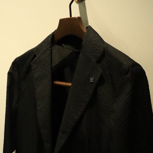 シアサッカーのためシワが目立ちにくく、スーパー軽いため出張などでもサササッサササササササッっと持っていけるんですよ。これ。