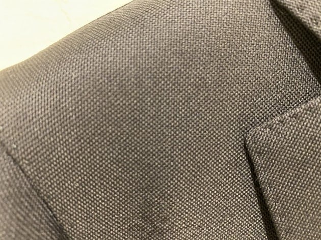 今年は、ウール98%、ポリウレタン2%の生地です。ただでさえ軽い仕立てなのにストレッチを効かせることでより動き易くなりました。