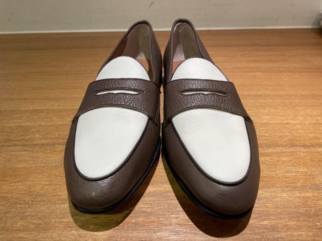 イタリア製のグレインレザーのコンビが非常に新鮮なローファーとなっております。