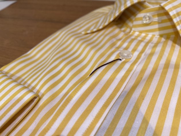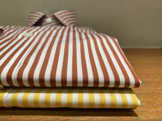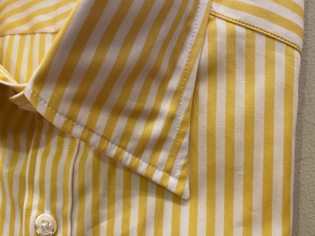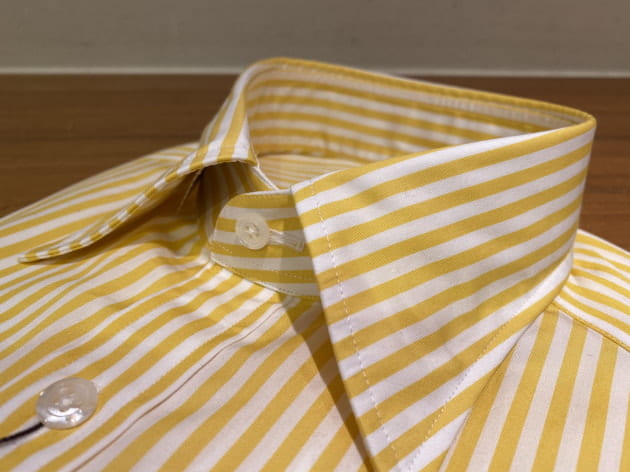 この新鮮な配色には、セミワイドではなく…どことなくロングポイントのレギュラーカラーやプラケットフロントが気分です。