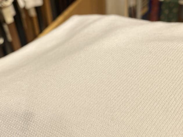 ジョーゼットと呼ばれる撚りの強いコットン糸で編み込まれた素材は、通気性が高く、ドライタッチな質感です。