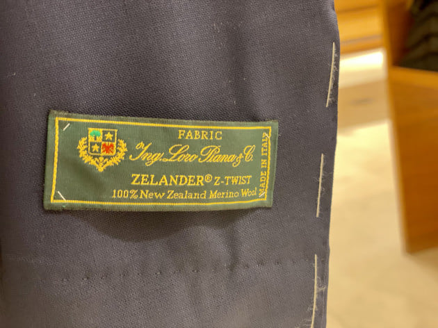 <LORO PIANA(ロロピアーナ)>社の高級ライン<ZELANDR>の強い撚りをかけた生地を使っており。通気性は勿論、弾力があるシワのなり辛い生地感になっております。
