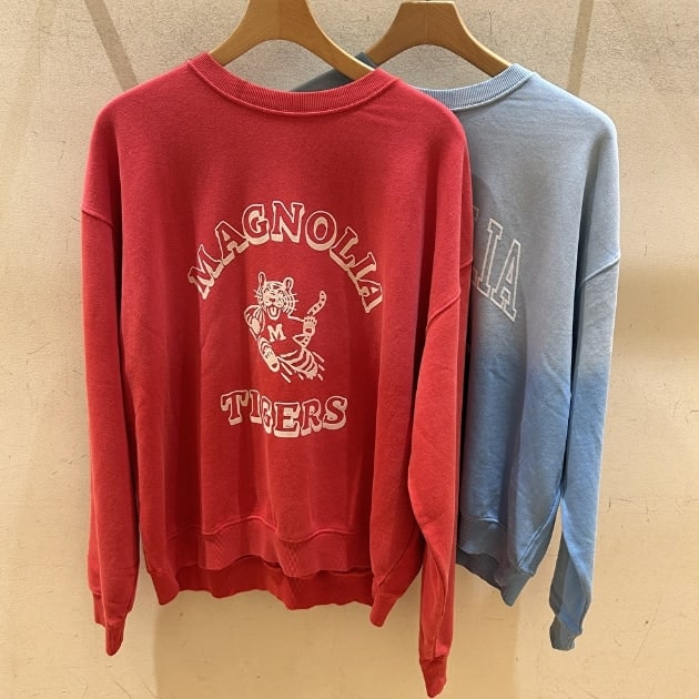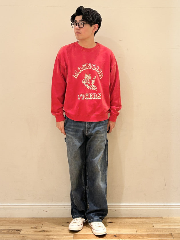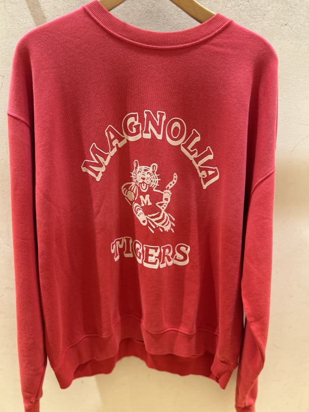 最初に紹介したいのは、ヴィンテージのカレッジスウェットを思わせるタイガープリントのスウェット。