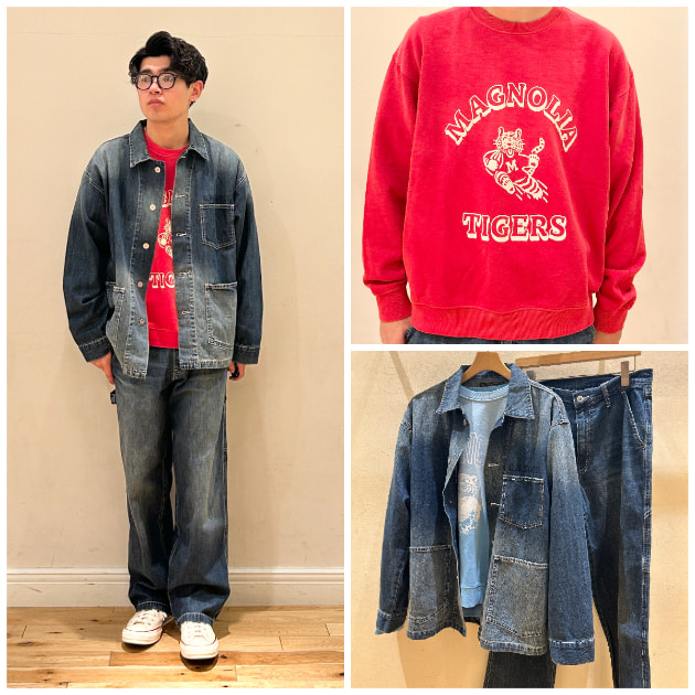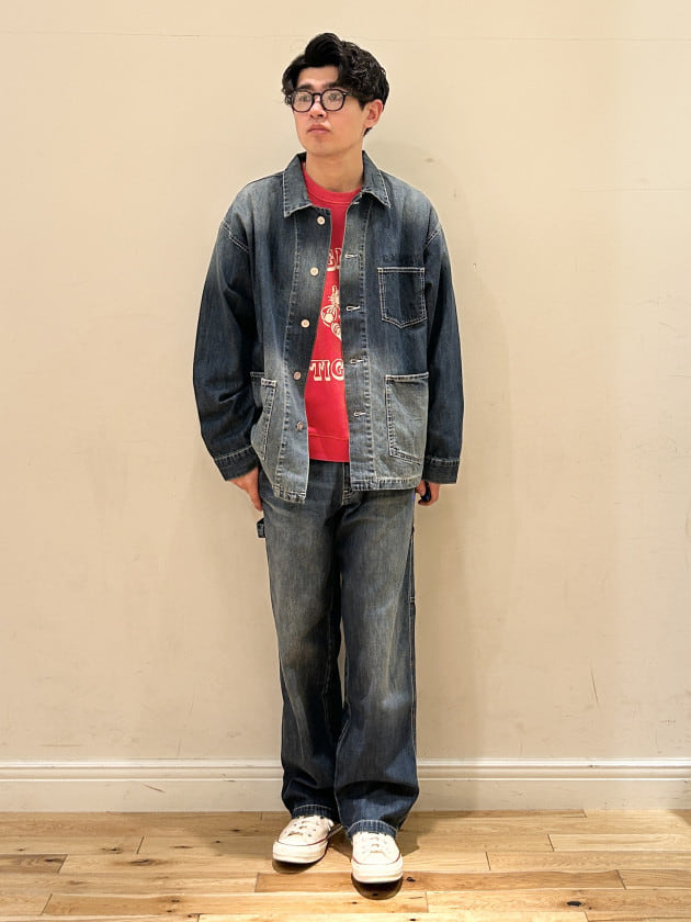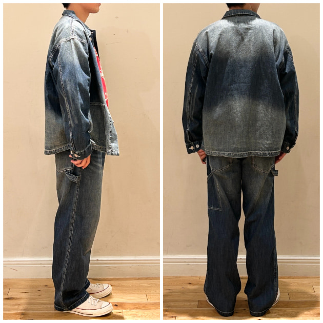 ヴィンテージ加工が施されたカバーオールとペインターパンツをセットアップでコーディネート!