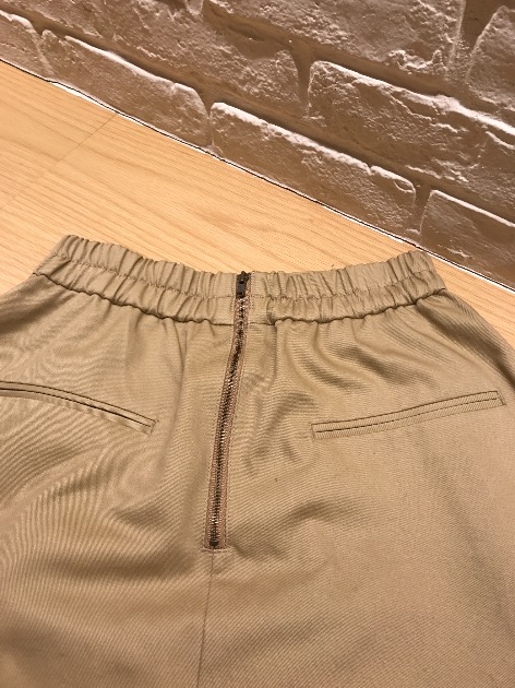 ウエストは背中の部分はゴムとファスナーになっていて、スッキリ着こなせるんです。