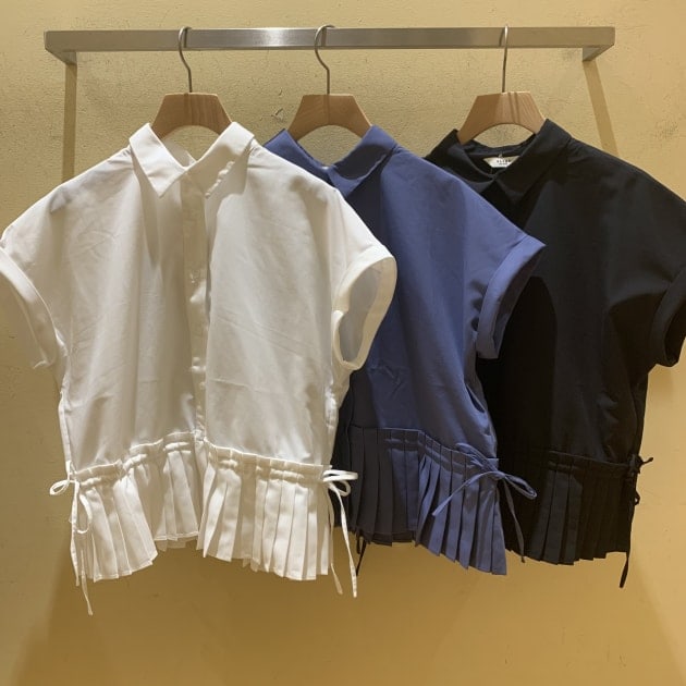 スカートを主役に毎年人気の裾プリーツシャツを合わせました!