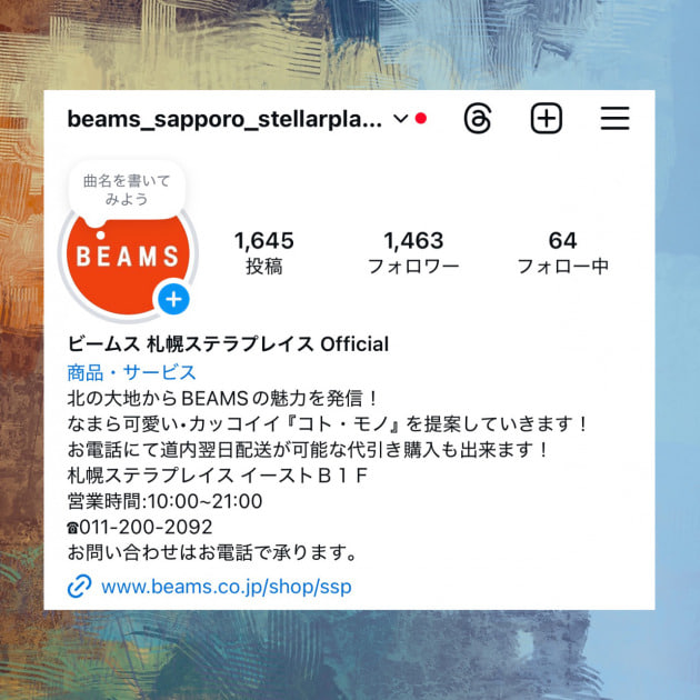 ビームス札幌ステラプレイス」のInstagramもフォローお願いします!