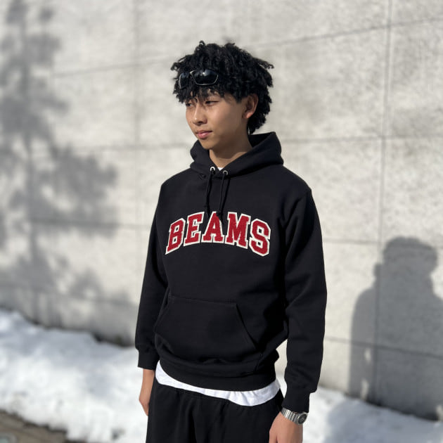 11130412147BEAMS ロゴ ベーシック フーディ