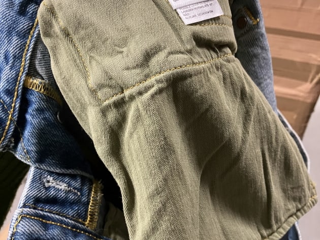 フロントのポケットのタブもリーバイスの赤とビームスのオレンジの2色使いです。