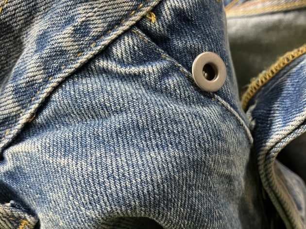 そして。バックポケットの弓形のステッチ(アーキュエイトステッチ)が手書き調でペイントされてます。かすれた感じになってますので、