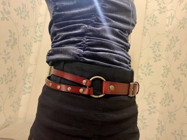 なんといってもこの、2本のストラップが特徴的なベルトです。