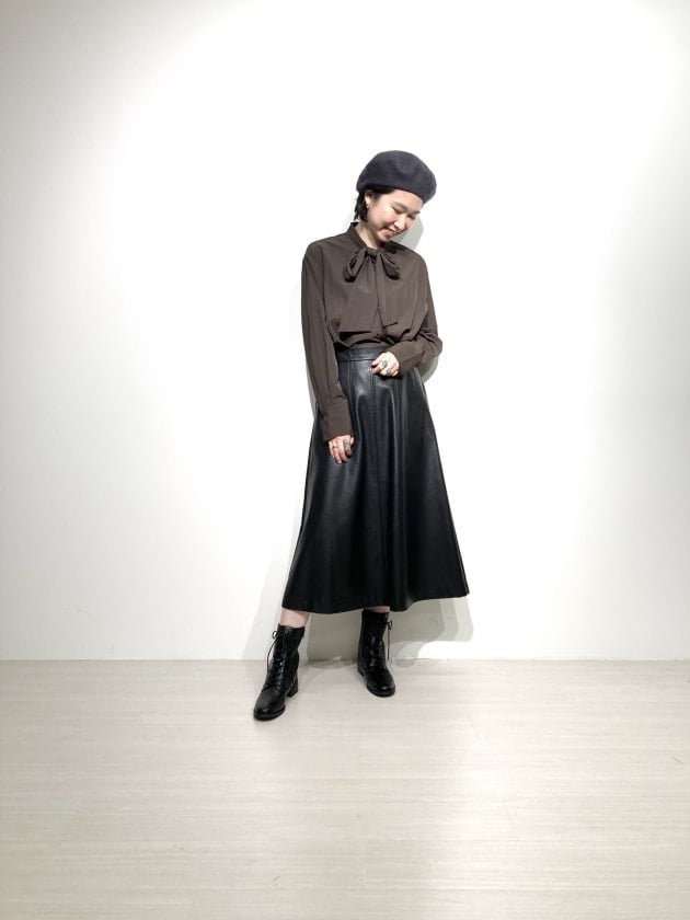 ボウタイブラウスとベレー帽でレトロ感を出しました!ブラウスとの相性抜群です◎