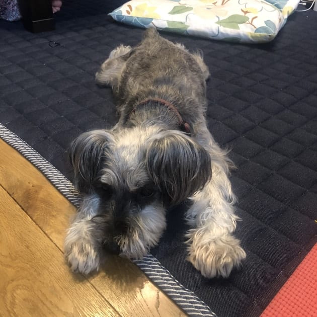 愛犬ちゃんの伸びきった姿が可愛くてパシャリ。写真が嫌いなのでちょっとお顔がふてくされています笑