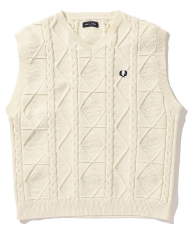 FRED PERRY独自のパターンがポイントのケーブルベストです!