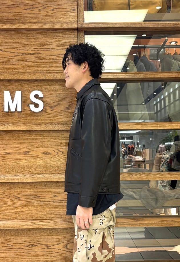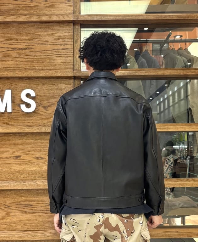 こちらのアイテムはMサイズを着用しています。Leeの名作デニムブルゾン「91-B」を大胆にもレザージャケットへと昇華させた別注!