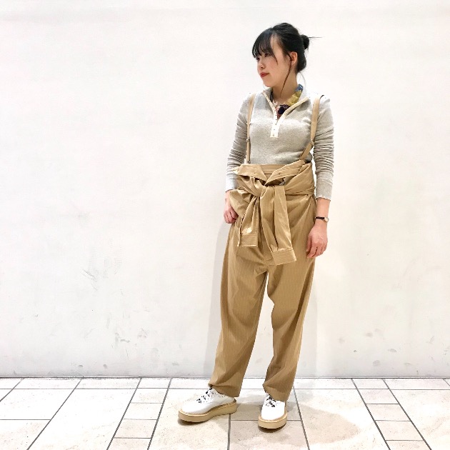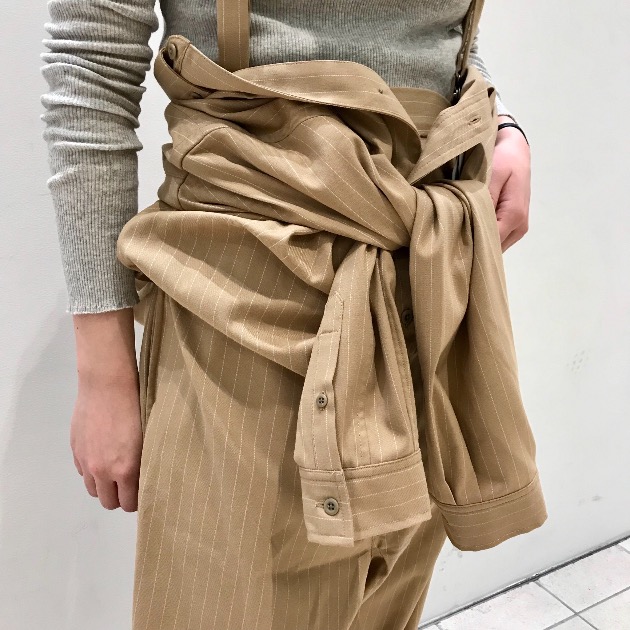 まずはこちら。アイテムはツナギを使用しているのですが、腰でまいていただくとサロペットになる2way使用。