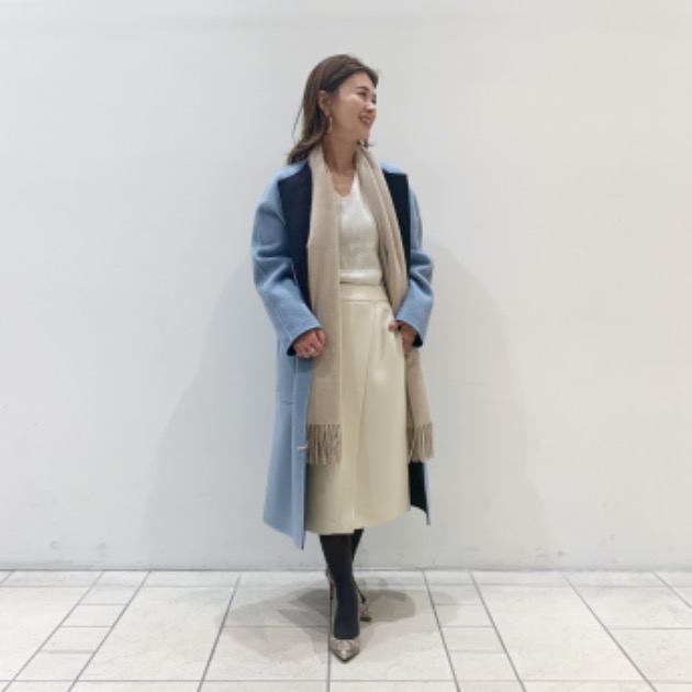 華やかなSAX BLUEに白を基調としたコーディネート。