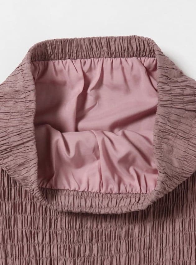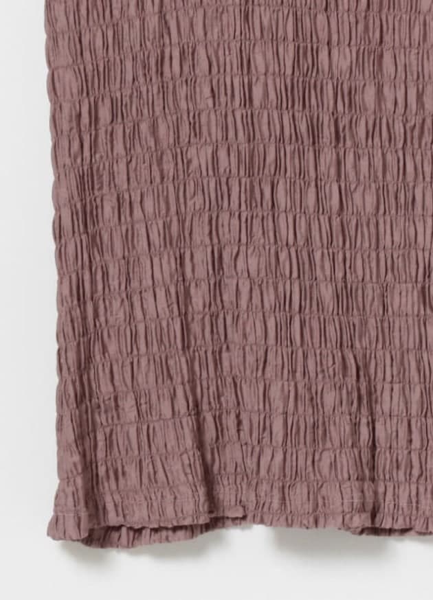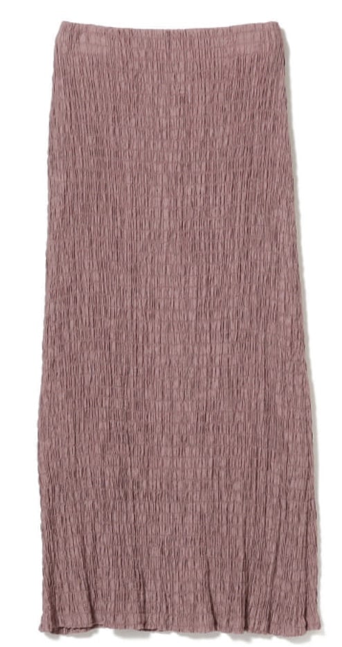 シャーリング加工を贅沢に施したマキシ丈のスカートです!スモーキーカラーが新鮮なカラーリングでご用意しました!!ウエストはゴム仕様になっているので、楽に着脱出来るのも嬉しいポイント!