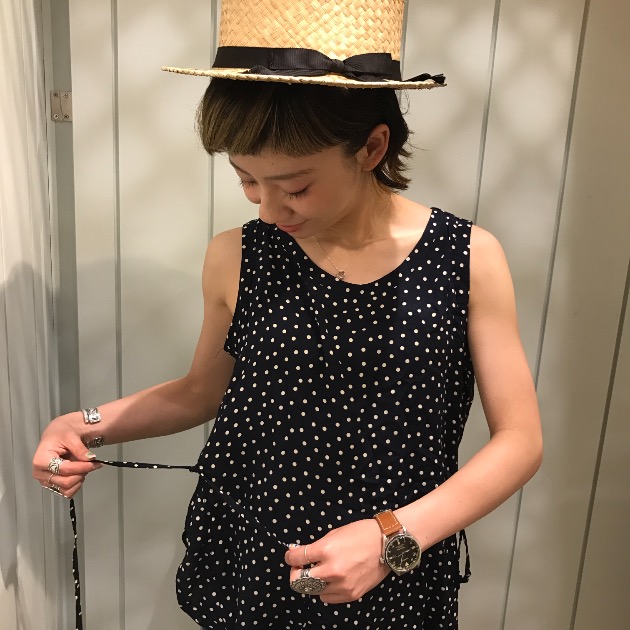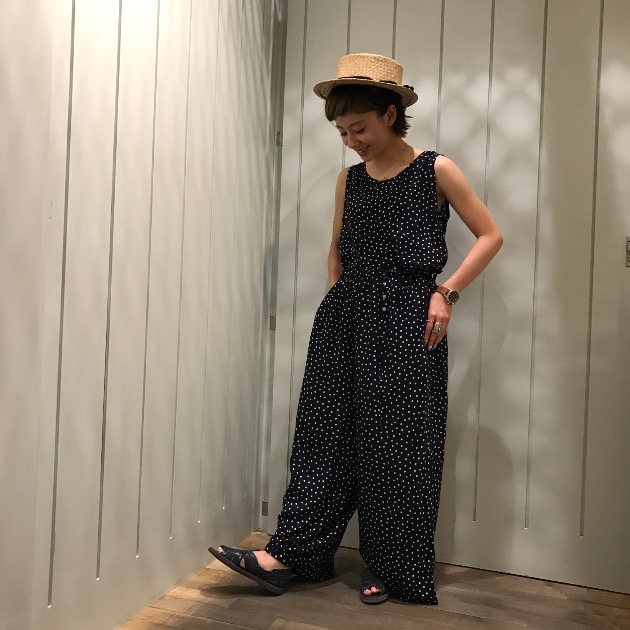 セットアップで着る場合は、トップスをインしてオールインワン風に着て頂くのがオススメです。