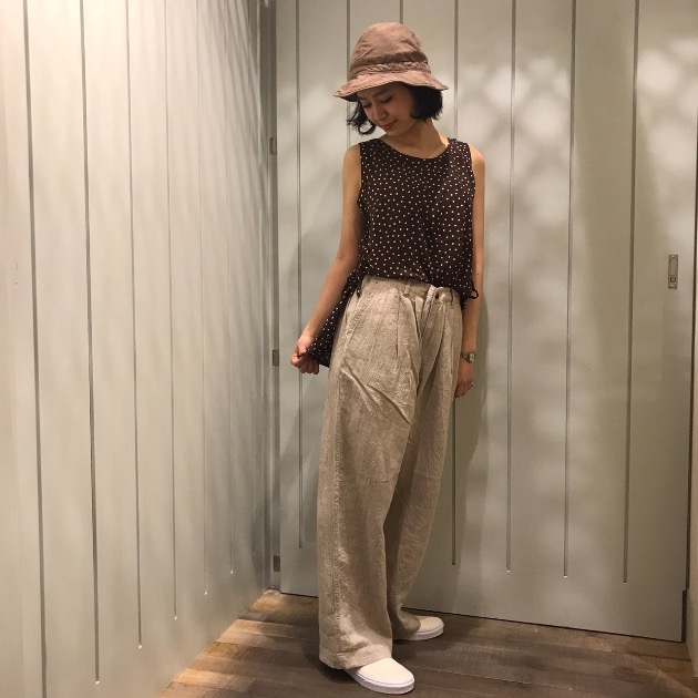 太さのあるパンツですが、レーヨン素材なので重くなりすぎずに履いて頂けます。