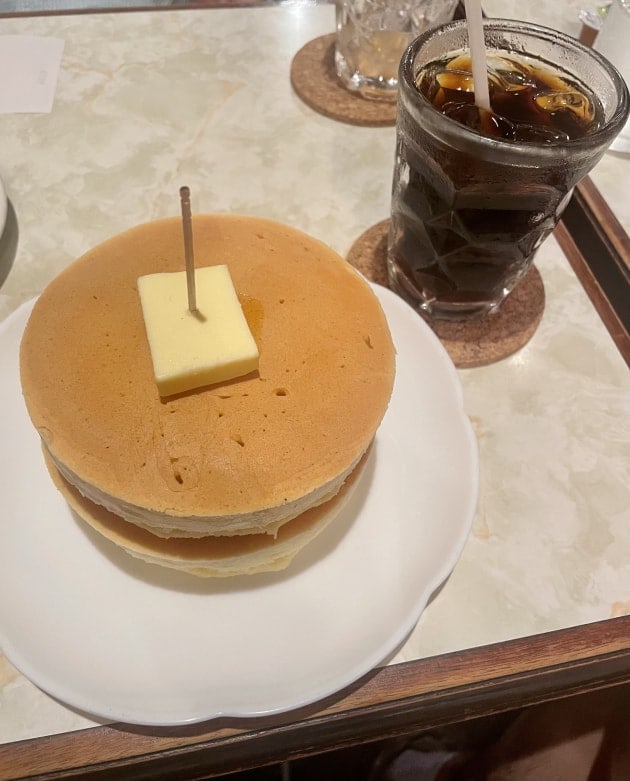 パンケーキを食べ