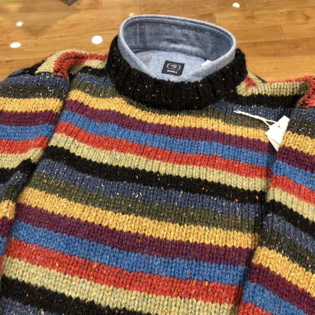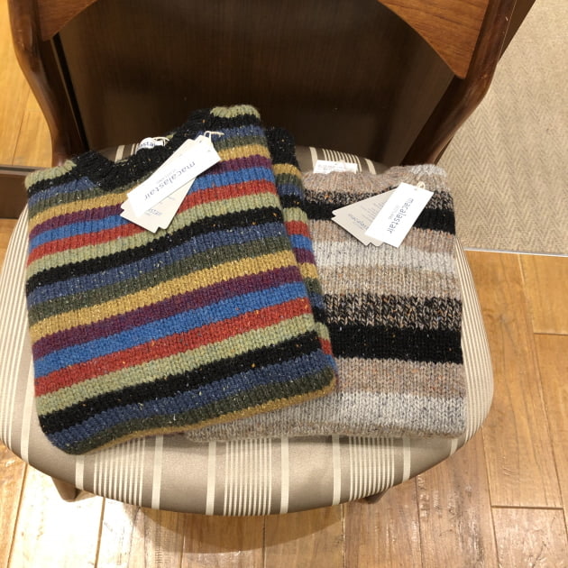 <Macalastair>よりマルチボーダークルーネックニットが入荷しています。