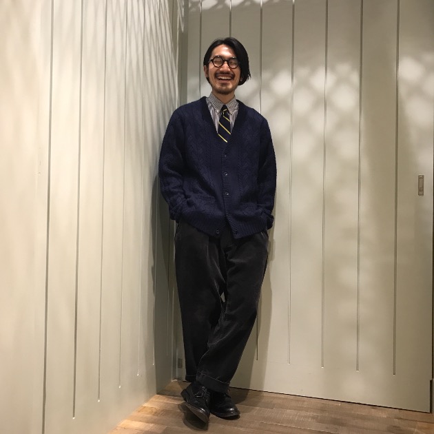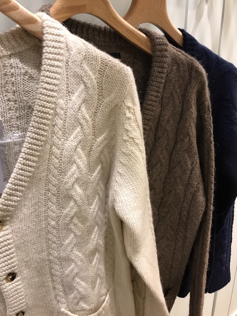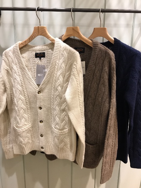 続いてはBEAMS PLUSオリジナルのアルパカケーブルカーディガン。