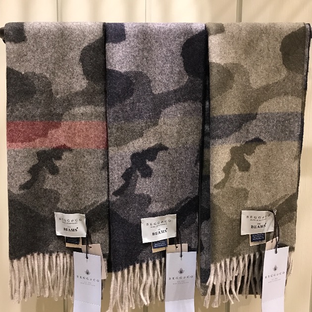 スコットランドのBEGG&COのマフラーはラムズウール、カシミヤ、アンゴラ等の天然繊維のみを使用した雲のような肌触りが特徴。